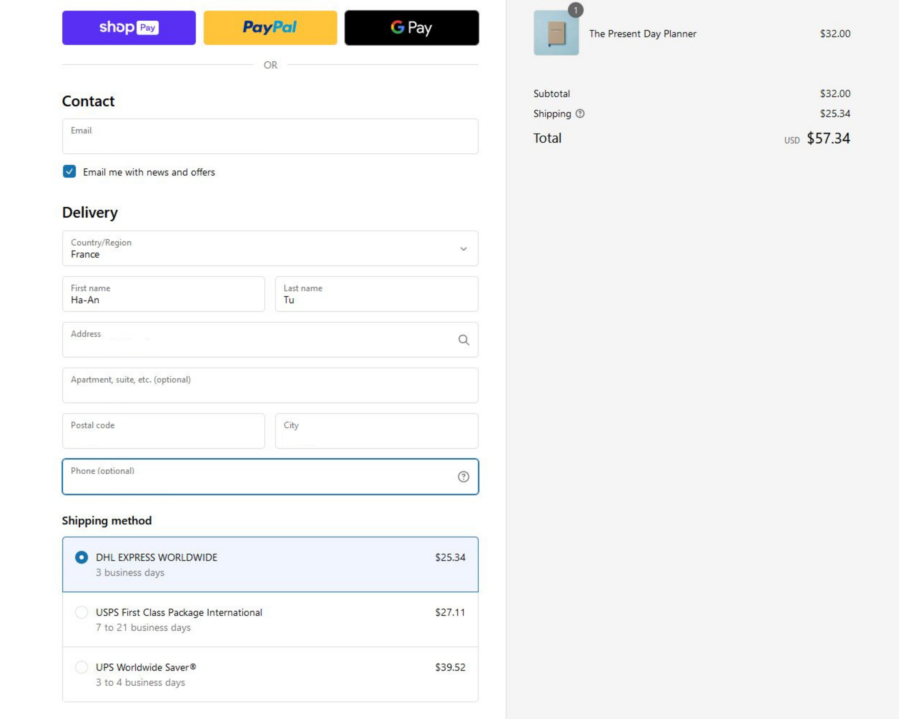 Proceed to "Check out", enter your contact email, and shipping details.