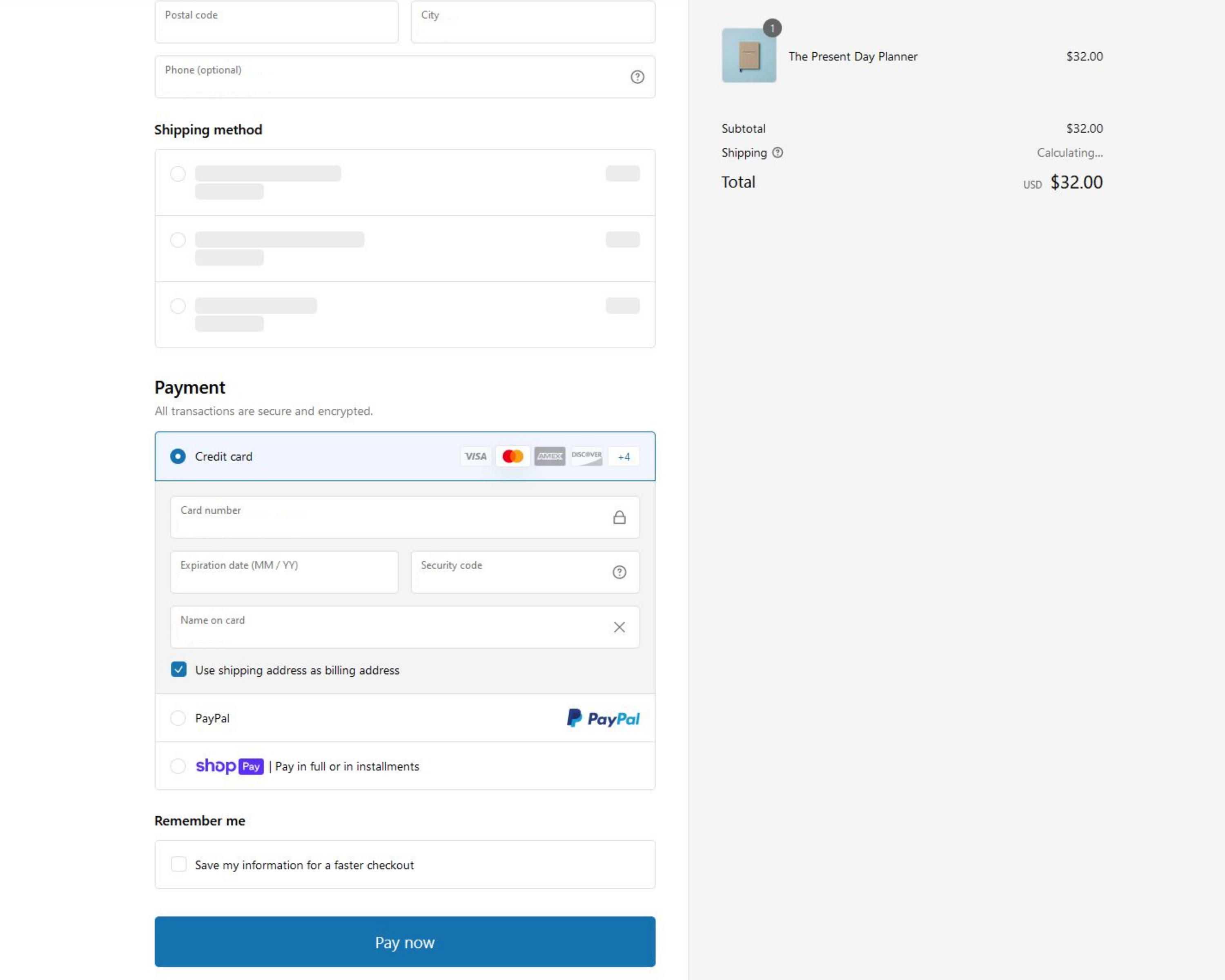 Choose your payment method, fill in the required information, and choose "Pay Now" to confirm your purchase.