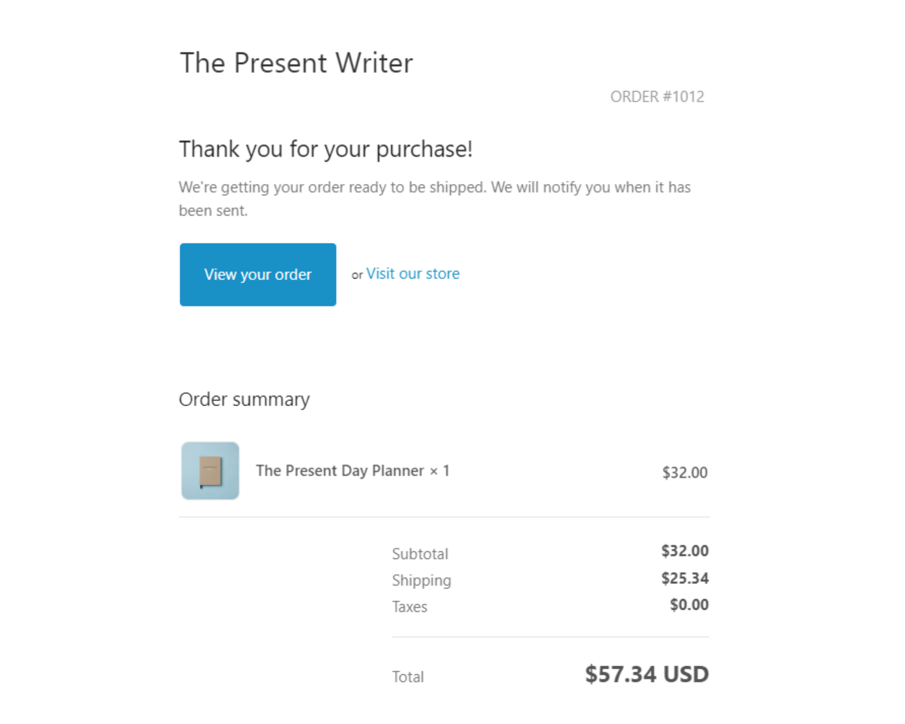You will immediately receive an order confirmation email with your order details and delivery information from support@thepresentwriter.com
